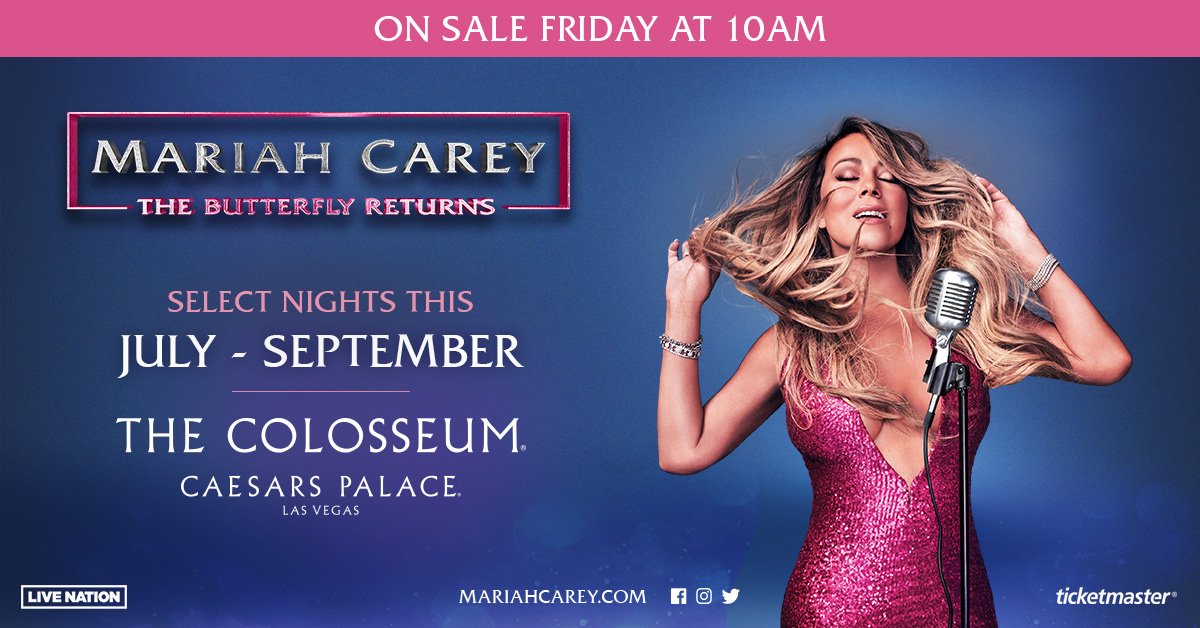 asana15 16,648 Posted April 30, 2018 Share Posted April 30, 2018 The competition for that visitor's dollar is increasing - Mariah Carey will have another residency in Las Vegas. In an announcement made Monday, the concert series will be called The Butterfly Returns. The show will “spotlight a more intimate performance.” The shows will be at The Colosseum at Caesar’s Palace. 12 total performances are scheduled for July, August and September of this year. Tickets go on sale Friday, May 4th. http://www.wrmf.com/mariah-carey-returns-to-las-vegas-for-residency/ Link to post Share on other sites More sharing options...