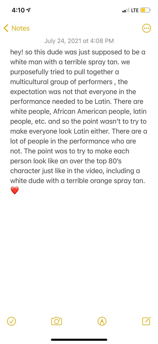 P0JffionRowQat 27 Posted July 25, 2021 Share Posted July 25, 2021 The chorus sounds catchy. The rest of the song just sounds tacky, she tried too hard to copy the vibe from the Permission to Dance video. Her quote: https://www.twimg.com/media/E7FntIEWYAQR253.jpg As for the controversy, read the last line from her quote above. She wanted the guy to spray-tan Orange. The guy probably did not like being spray-painted Orange, he had no choice but to do what he was told because he's just a back up dancer. Afterwards, he heard the backlash and outrage, then he intentionally sabotaged her on purpose by using a black-person Emoji on his IG-social-media. She could explain the whole situation better though, when she's ignoring it then it's on her too. Link to post Share on other sites More sharing options...