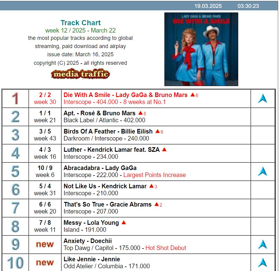 3= Lady Gaga & Bruno Mars - Die With A Smile