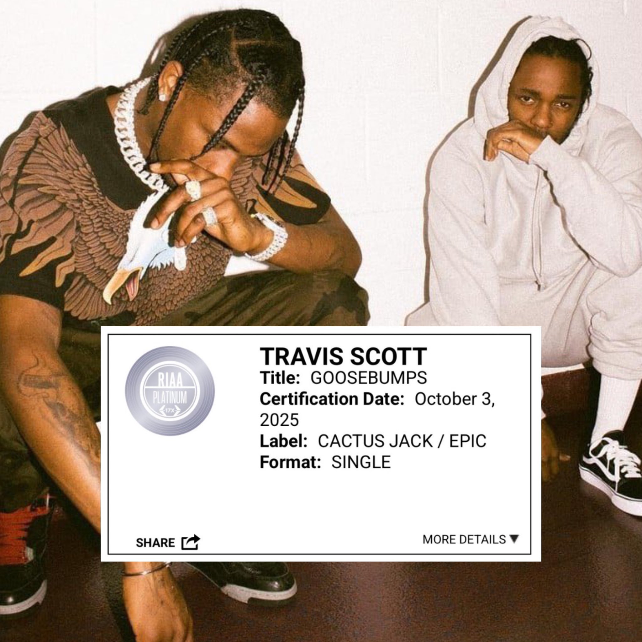 JustTea 6,581 Posted October 5, 2025 Share Posted October 5, 2025 16 hours ago, weed said: ok im gonna need Interscope to wake tf up bc what do you mean Travis Scott has a 17x Platinum song... Local act and that song has around 3B streams on Spotify and its remix has almost 900M + over 1B on YouTube too Link to post Share on other sites More sharing options...