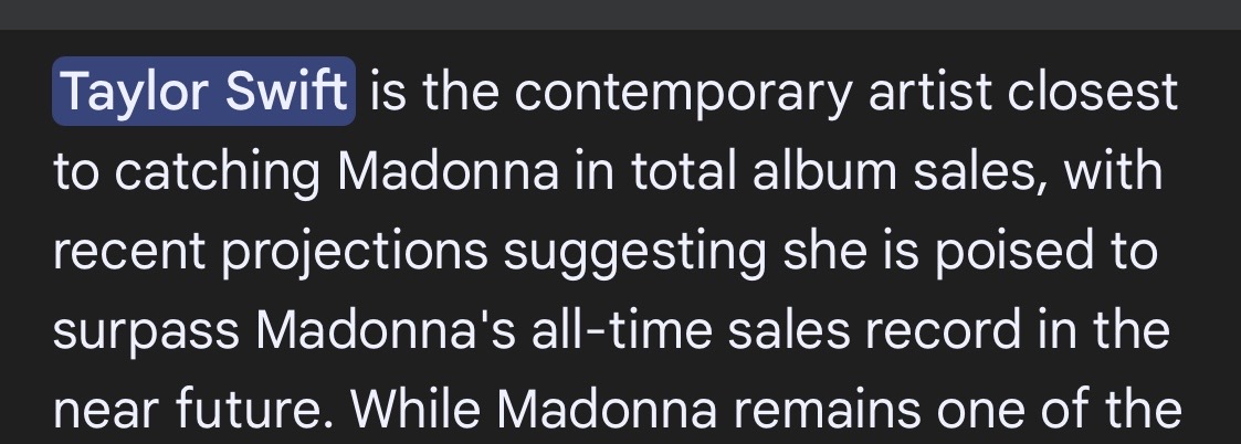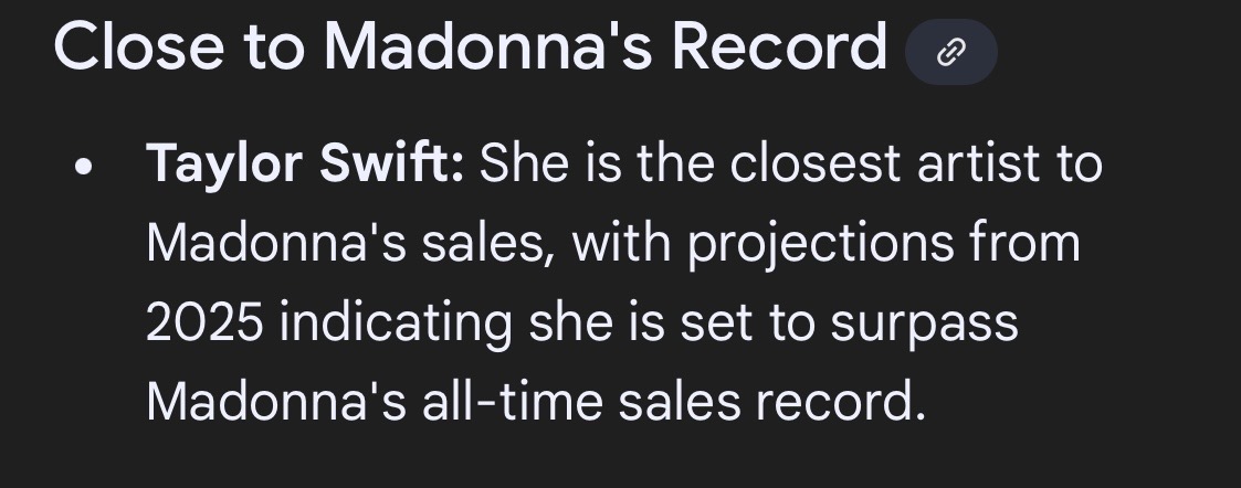 She still needs to break Madonna’s record. It’s not over. It’s never really over.