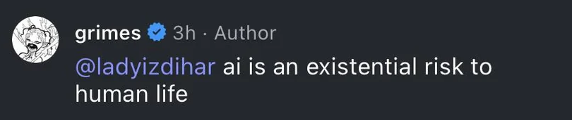 lastpopicon 37,224 Posted 29 minutes ago Share Posted 29 minutes ago 7 hours ago, Teletubby said: you praised her for AI critique but she was one who tried to popularize it. now she repeats the same statements that Musk made about AI because she still wants his attention, she even put Elon’s anime AI in her video. Are we really saying Grimes tried to popularize AI? She's a very small part of the machine. She's literally just a popstar. What I see is an artist voicing her POV on the AI craze. The melody that you choose can rescue you Quote Link to post Share on other sites More sharing options...